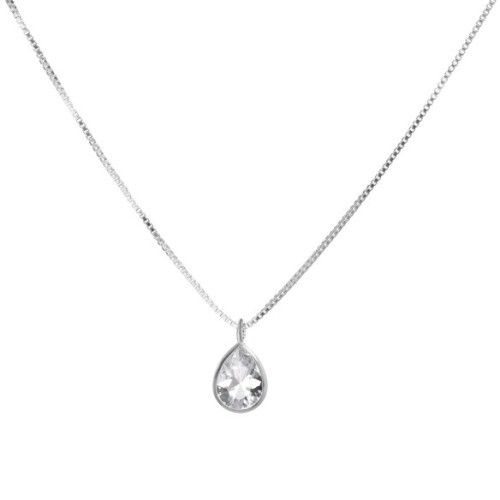 Collar de Plata 925 Punto de Luz Gota Circón 8 mm 45 cm