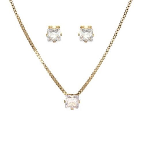 Conjunto Enchapado en Oro Diseño Cuadrado Punto de Luz