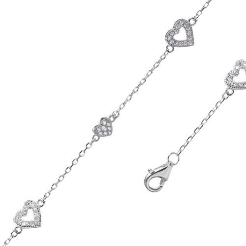 Pulsera de Plata 925 Figuras Y Relieve de Corazón con Circones