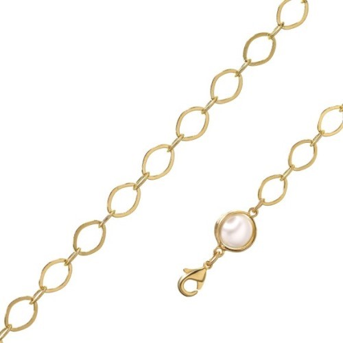 Pulsera Enchapada en Oro Diseño Eslabón con Perla Imitación