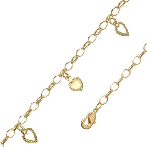 Pulsera Enchapada en Oro Diseño Serie Eslabones con Corazones